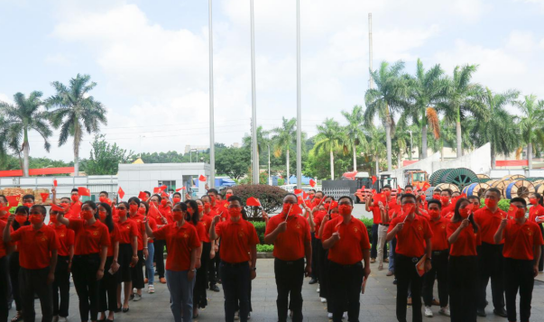 盛夏七月,热情似火!多多28注册入口电缆公司已是党旗飘扬,处处洋溢着喜庆祥和的气氛。当日上午,身穿“中国红”T恤的党员等参会人员有序入场,列队数字“100”庆祝图案,表达对中国共产党的无限热爱。随着主持人一声令下,伴随着激昂雄壮的国歌声,护旗手奋力将鲜艳的五星红旗抛向天空,国旗迎着清晨第一缕阳光冉冉升起,全体人员庄重注视国旗,高唱国歌,脸上写满了骄傲与自豪。